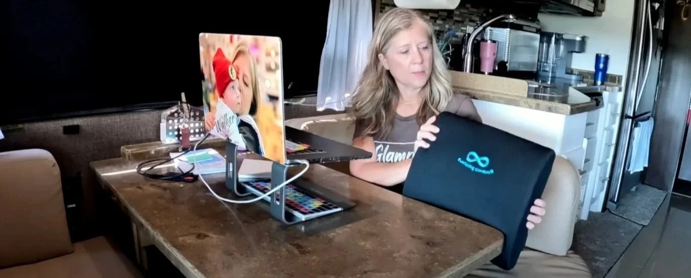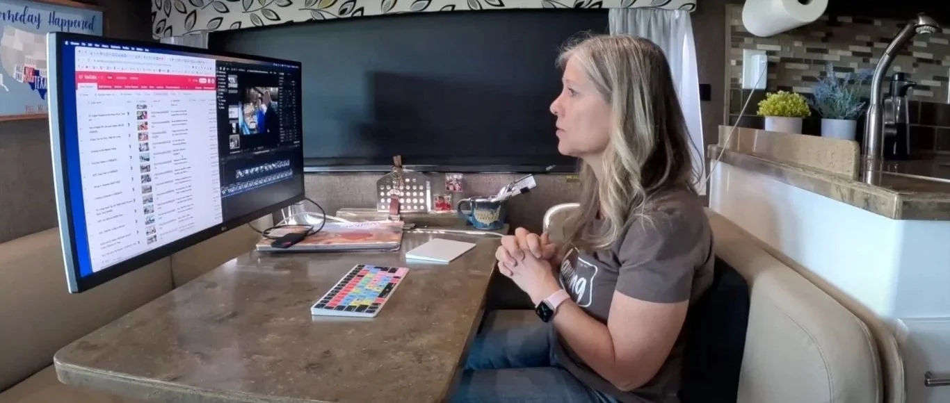Setting up a workspace in my RV has changed the pace and purpose of each workday. No more drifting from chair to couch to picnic table, trying to get comfortable and stay focused. Now, I have the ultimate workspace for everything from video editing to Zoom calls.