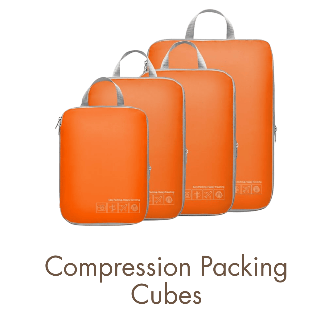 Compression packing cubes don’t just help you fit more into your suitcase. They allow you to stay organized, too! We use them to plan overnight stops. For example, if we’re staying in a hotel before a flight, I’ll pack the outfit for the next day in one cube. That way, I can grab exactly what I need without digging through every bag.