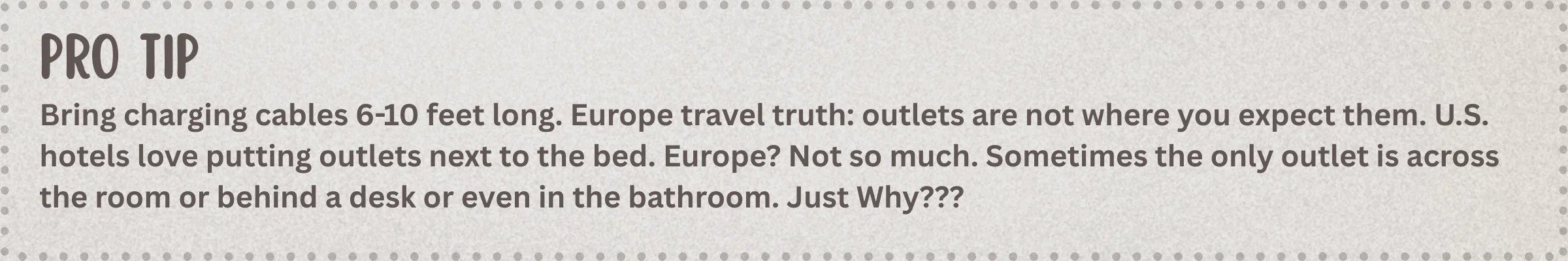 That means if you plug in a U.S. device with a large draw without the right protection… poof! 💥🔥 Say goodbye to your favorite hair dryer or flat iron (ask me how I know). A voltage converter and dual-voltage travel gear ensure your electronics get the right power and keep working throughout your trip.