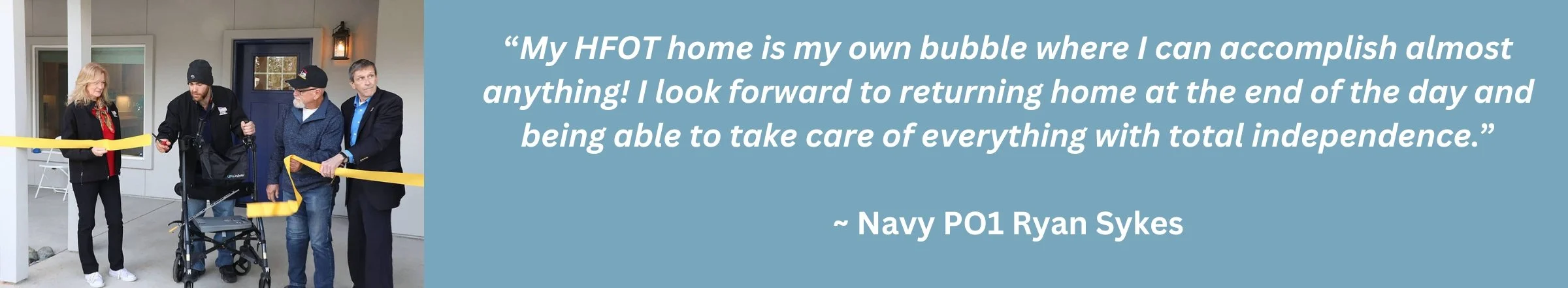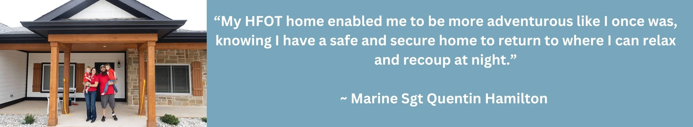 Homes For Our Troops (HFOT) is a nonprofit organization dedicated to building and donating specially adapted custom homes for severely injured post-9/11 veterans. Their mission is to help these heroes regain their independence and rebuild their lives by providing mortgage-free homes tailored to their specific needs. Click any quote below to watch their full story.